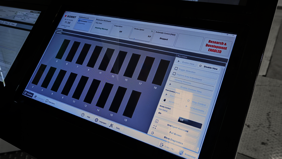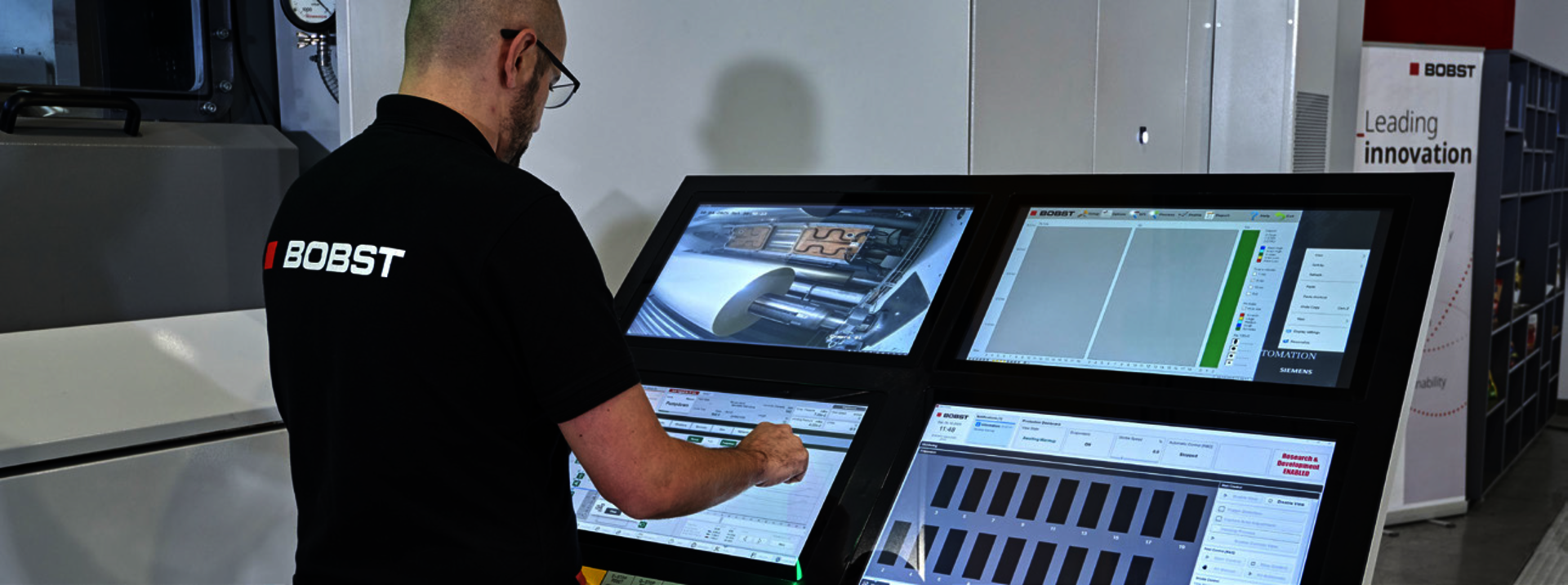 New operator console with controls all in one place. More intuitive HMI screen and software interface make the machine easy to operate. BOBST iMA software powered by AI to automate and control the deposition process.